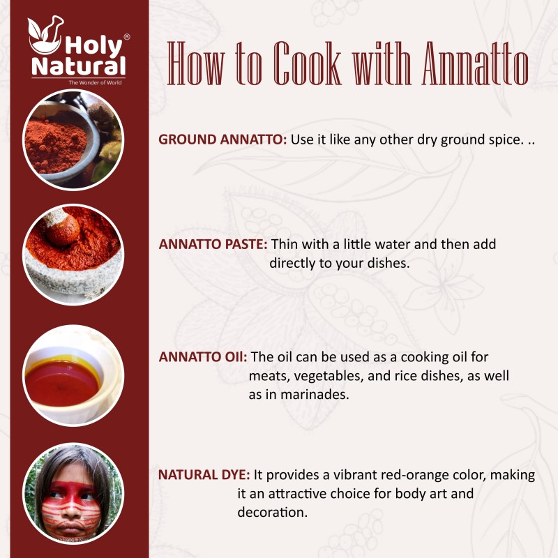 » Ground annatto seeds, often mixed with other seeds or spices, are used in the form of paste or powder for culinary use.