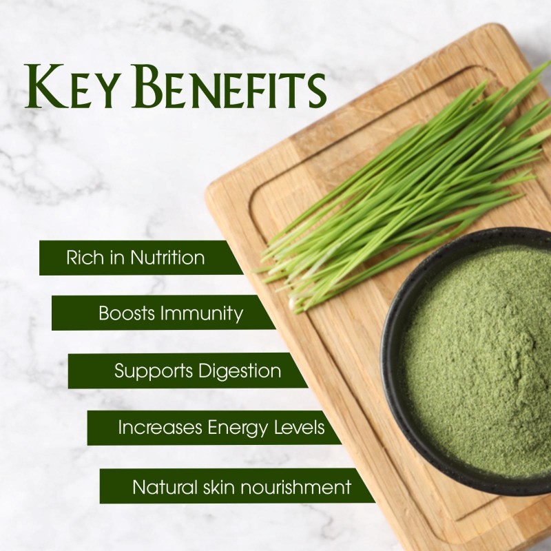 Wheat grass is the young grass of the common wheat plant called “Triticum aestivum”. Wheatgrass powder is a dietary supplement obtained from extracting the dehydrated juice of wheat grass. It is prepared from the grass grown naturally on the field for three or more months before being dehydrated.