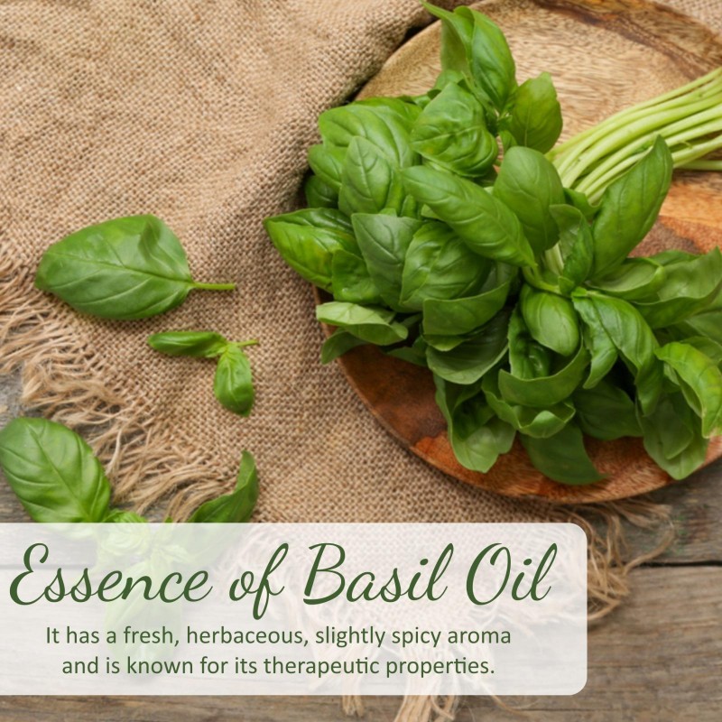 •Basil essential oil is said to enhance mood, improve digestion, increase alertness, and soothe muscle aches.