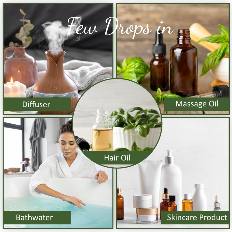 •It can also be used in the most contaminated part of the house – your bathroom. Basil oil helps purifies the air in the house and makes sure that the inhabitants are breathing clean air and consuming safer food. We may use Basil oil for its antimicrobial properties by diffusing the oil or by spraying it on surfaces using a DIY spray bottle.