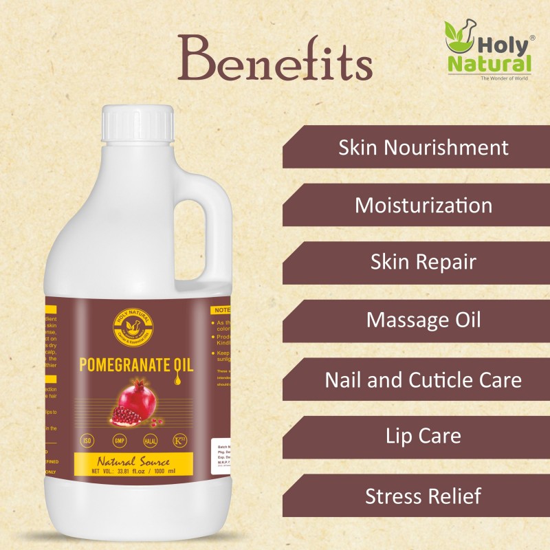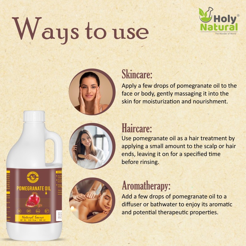 Pomegranate oil, derived from the seeds of the pomegranate fruit, is a natural and versatile product. It is known for its potential benefits in skincare, haircare, and overall well-being.